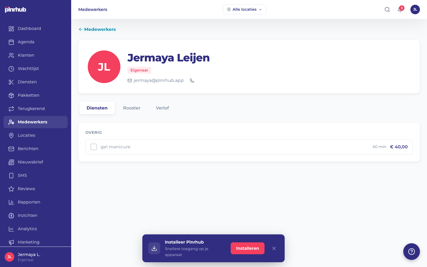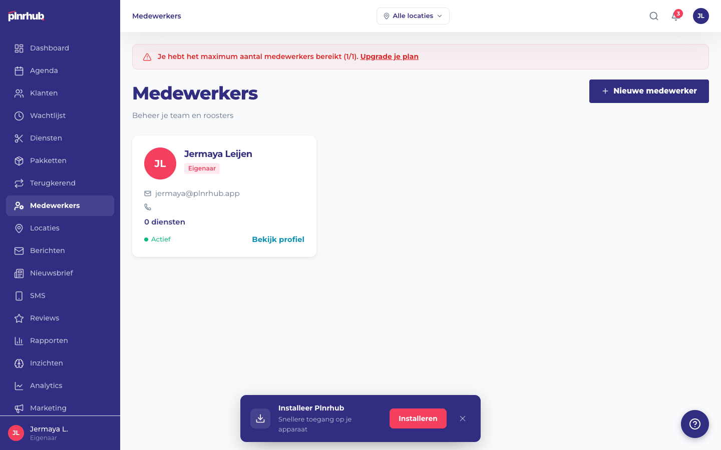 Elke medewerker in Plnrhub heeft een eigen agenda, werkschema en koppeling aan diensten. Zo zorgen klanten altijd voor de juiste persoon op het juiste moment. In dit artikel zie je precies hoe je een nieuwe medewerker toevoegt.